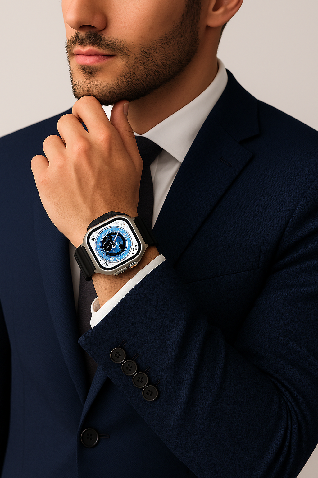 Negra para la oficina, blanca para el gym. Diseño premium que combina con todo. El Smartwatch Ultra Pro no solo destaca por sus funciones avanzadas, sino también por su diseño moderno y sofisticado.